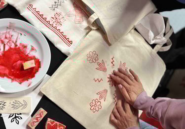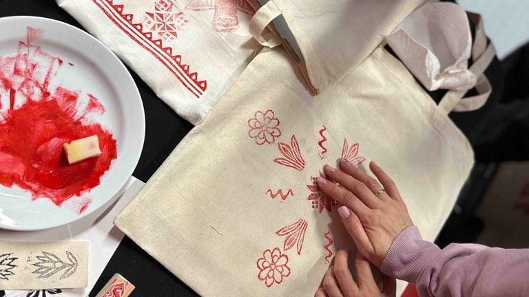 Tais pačiais antspaudais kuriame įvairiausius raštų derinius ant maišelių bei kitų tekstilės gaminių.