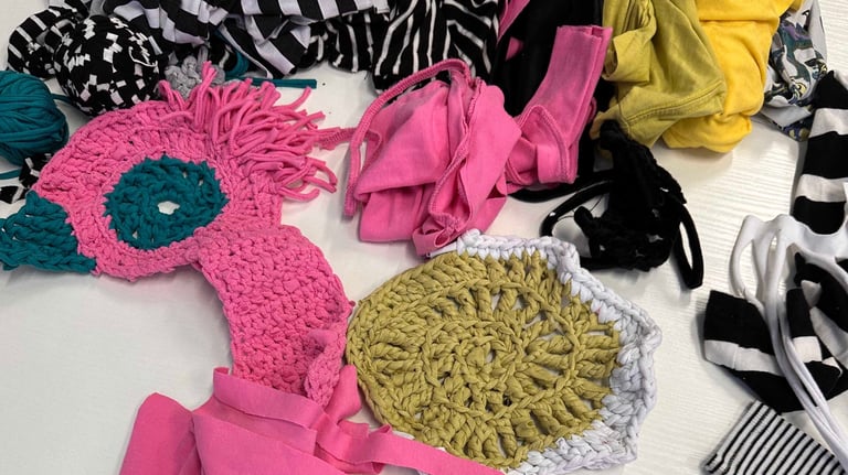 Kuriame siūlus iš dėvėti nebetinkamų marškinėlių ir mezgame rankomis.